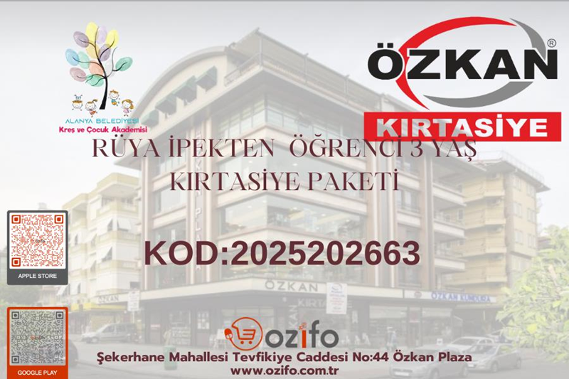 OZİFO (Alanya Özkan Kırtasiye) Şekerhane, No:44 Özkan Plaza Şekerhane Mahallesi, Tevfikiye Cd., 07400 Alanya/Antalya Telefon: (0242) 513 89 20 E-Posta: